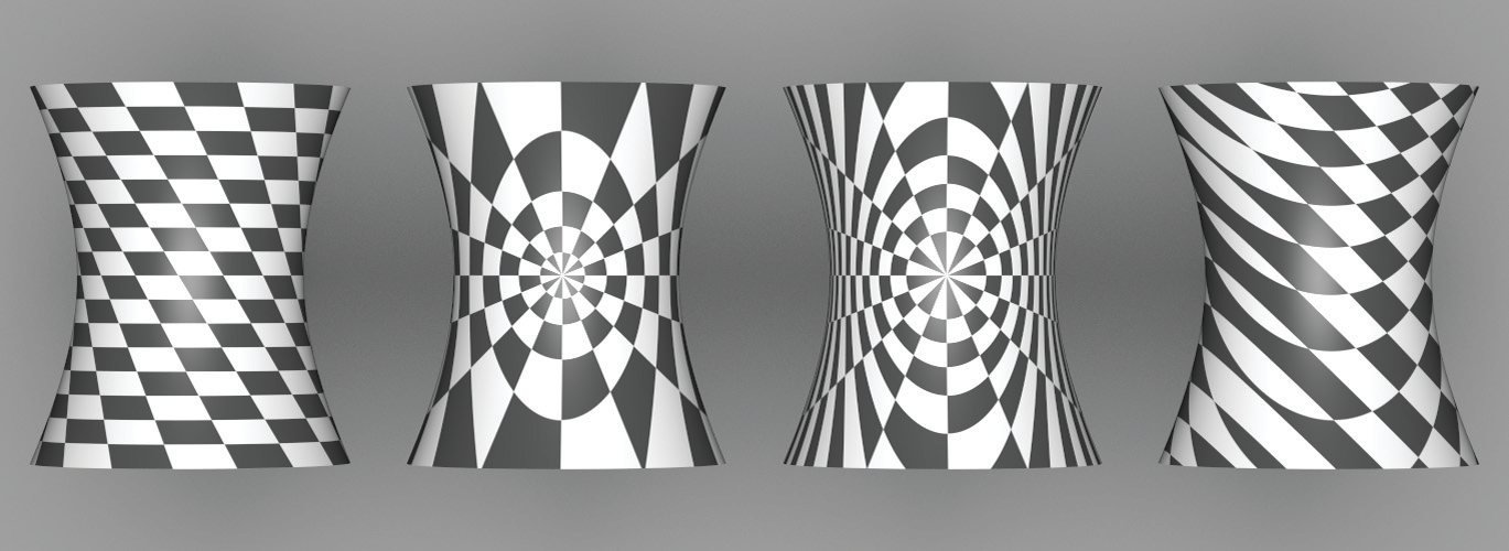 This section starts by introducing two abstract base classes—TextureMapping2D and TextureMapping3D—that provide an interface for computing these 2D and 3D texture coordinates. We will then implement a number of standard mappings using this interface (Figure 10.7 shows a number of them).