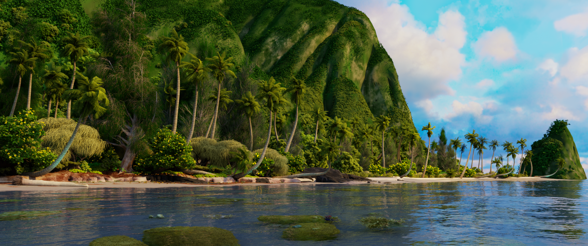 Scenes with multiple lights are easily handled because illumination is linear: the contribution of each light can be computed separately and summed to obtain the overall contribution. An implication of the linearity of light is that sophisticated algorithms can be applied to randomly sample lighting from only some of the light sources at each shaded point in the scene; this is the topic of Section 12.6. Figure 1.7 shows a scene with thousands of light sources rendered in this way.