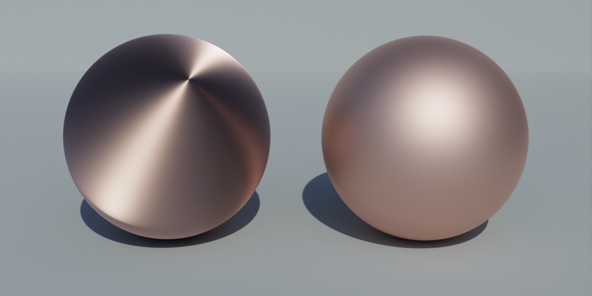 Figure 9.25 compares the appearance of two spheres with an isotropic and an anisotropic microfacet model lit by a light source simulating a distant environment.