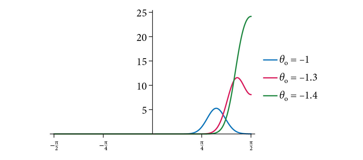 The difference between and may be outside the range we have defined the logistic over, , so we rotate around the circle as needed to get the value to the right range. Because dphi never gets too far out of range for the small used here, we use the simple approach of adding or subtracting as needed.