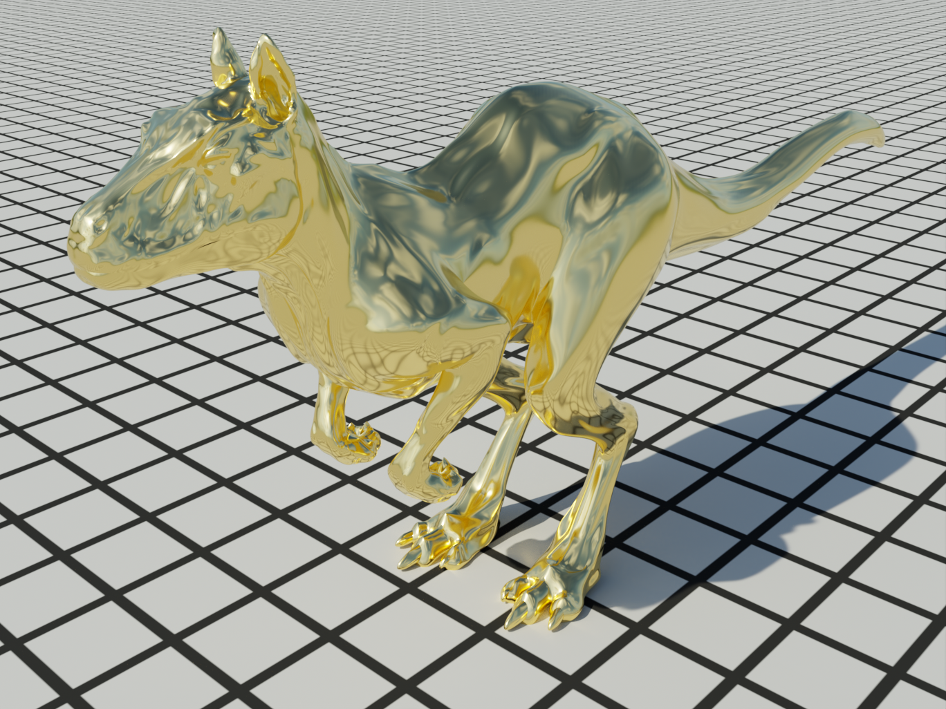 Figure 9.13: Killeroo with a Gold Surface. The killeroo model is rendered here using the ConductorBxDF. See Figure 9.12 for a plot of the associated absorption coefficient and index of refraction that lead to its appearance. (Killeroo model courtesy of headus/Rezard.)